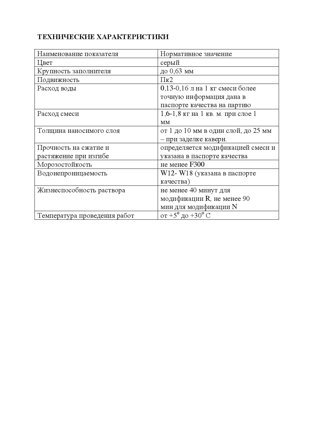 ОБЛАСТИ ПРИМЕНЕНИЯРемонтная тиксотропная смесь для внутренних, наружных, подземных, фундаментных работ, в том числе, ремонта поврежденных элементов бетонных и армированных конструкций, бетонных труб, эстакад, виадуков, тоннелей, пр. Не требует применения опалубки, не сползает с вертикальных поверхностей и потолков.